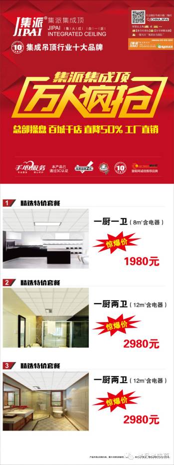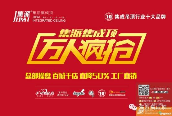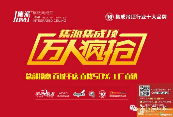 买房子,装房子,选吊顶,装吊顶是一个充满踌躇选择的过程。我们知道,你想有个温馨美丽的家,正在为这个家而辛勤奔波,那请来集派集成顶专卖店,众多新品来袭,全国联动,工厂直降50%!免费礼品、多样化套餐、最低折扣还有更多惊喜等着你!