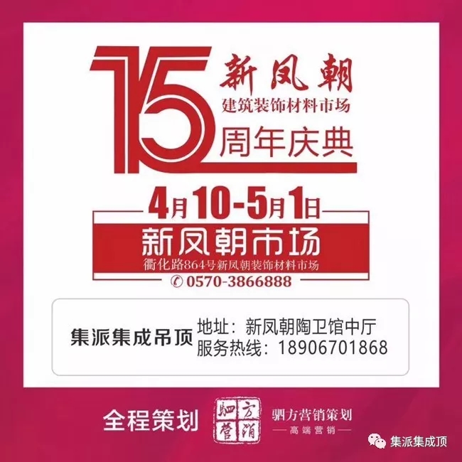 首页 > 新闻资讯 > 衢州新凤朝建筑装饰材料市场15周年庆,集派集成顶最给力,高性价比深受衢州消费者好评,订单创新高!